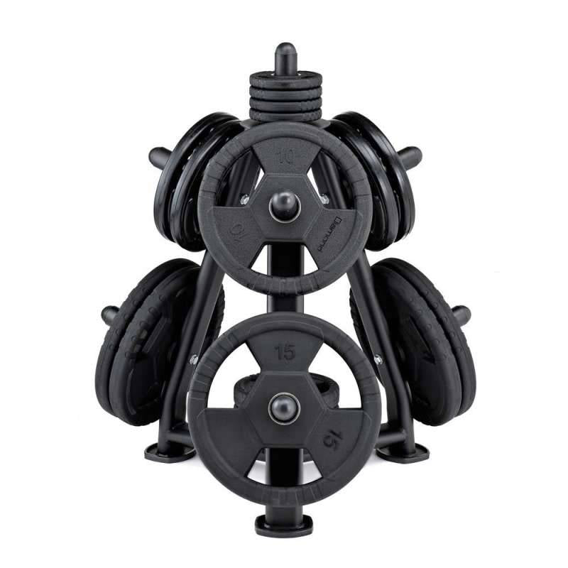 La rastrelliera porta dischi Diamond � dotata diÊ3 Braccia e 6 Perni porta dischiÊprincipali, adatti a dischi con foro olimpionico a diametro variabile.Dotata di altriÊ2 perni per collari o dischi di piccola taglia.