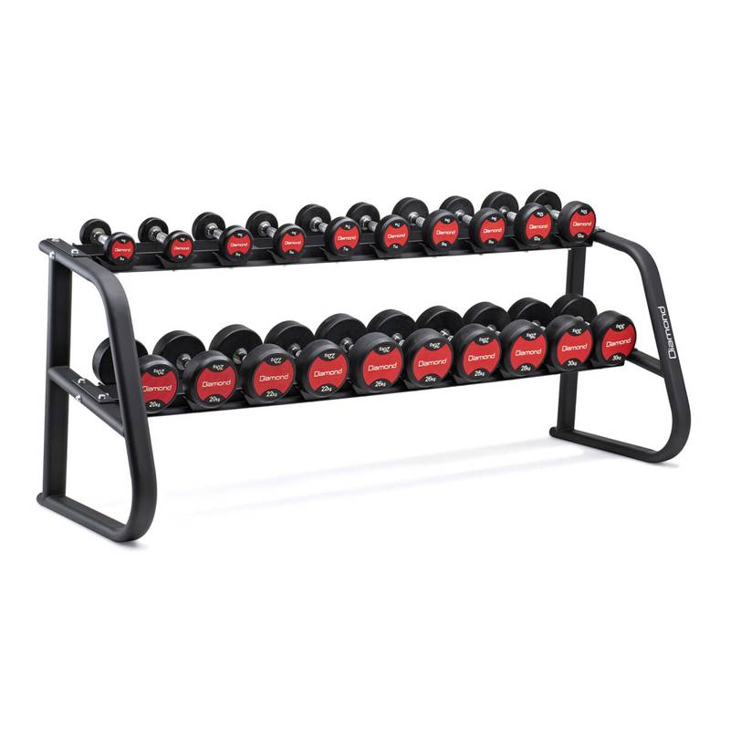 La Rastrelliera porta manubri 10 coppie RMD-2R, contiene fino a 10 coppie di manubri con terminale tondo se montato con le sedi in dotazione.